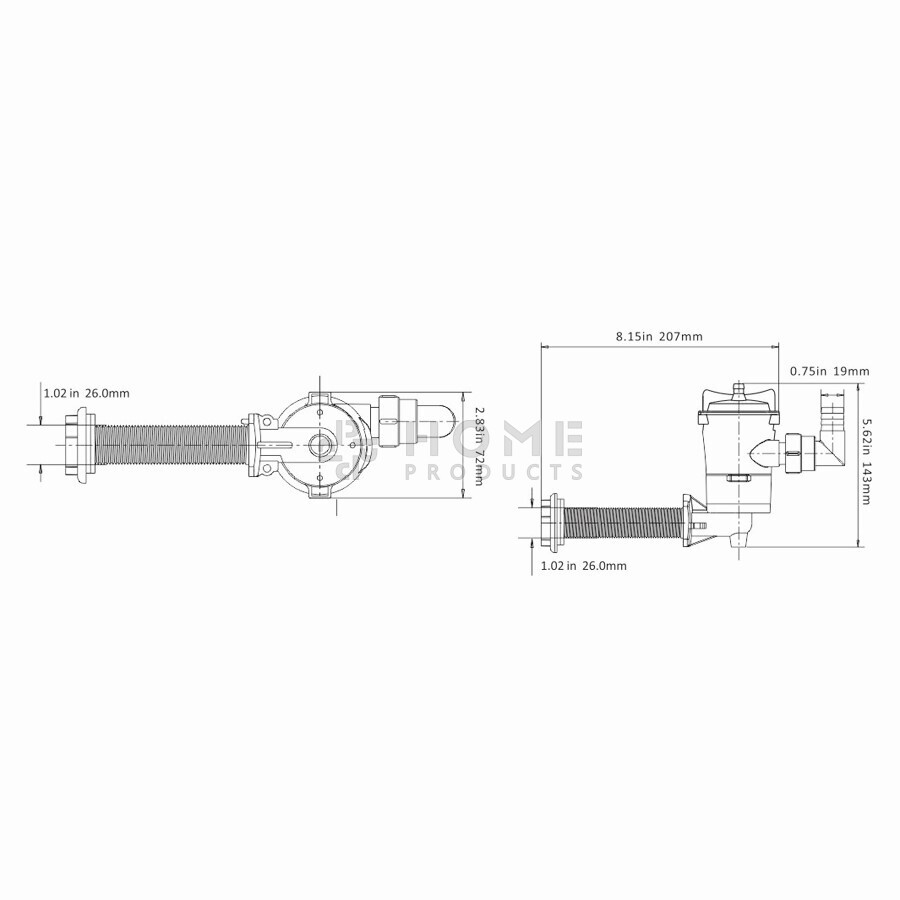 Ook bevat de pomp een roestvrijstalen pompas, en een robuuste met glasvezel gevulde ophaalbuis. Zijn slangaansluiting heeft een buitendraad van 24 millimeter en bevat een schroefdraadverbinding waaraan de twee bijgeleverde slangpilaren kunnen worden vastgedraaid. Deze handige verbinding maakt dat de pomp eenvoudig te installeren en bevestigen is.