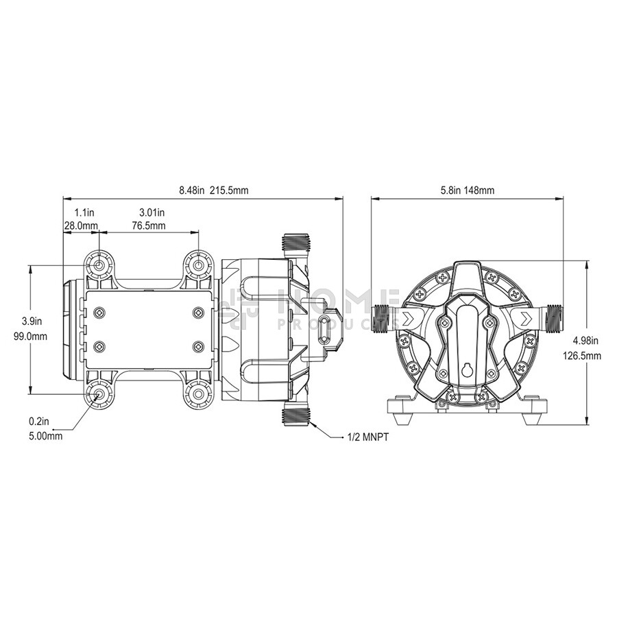 Heavy duty membraanpomp (drinkwaterpomp) met automatische flow control, 12V, 18.9 L/min, uitschakeldruk 4.8 bar