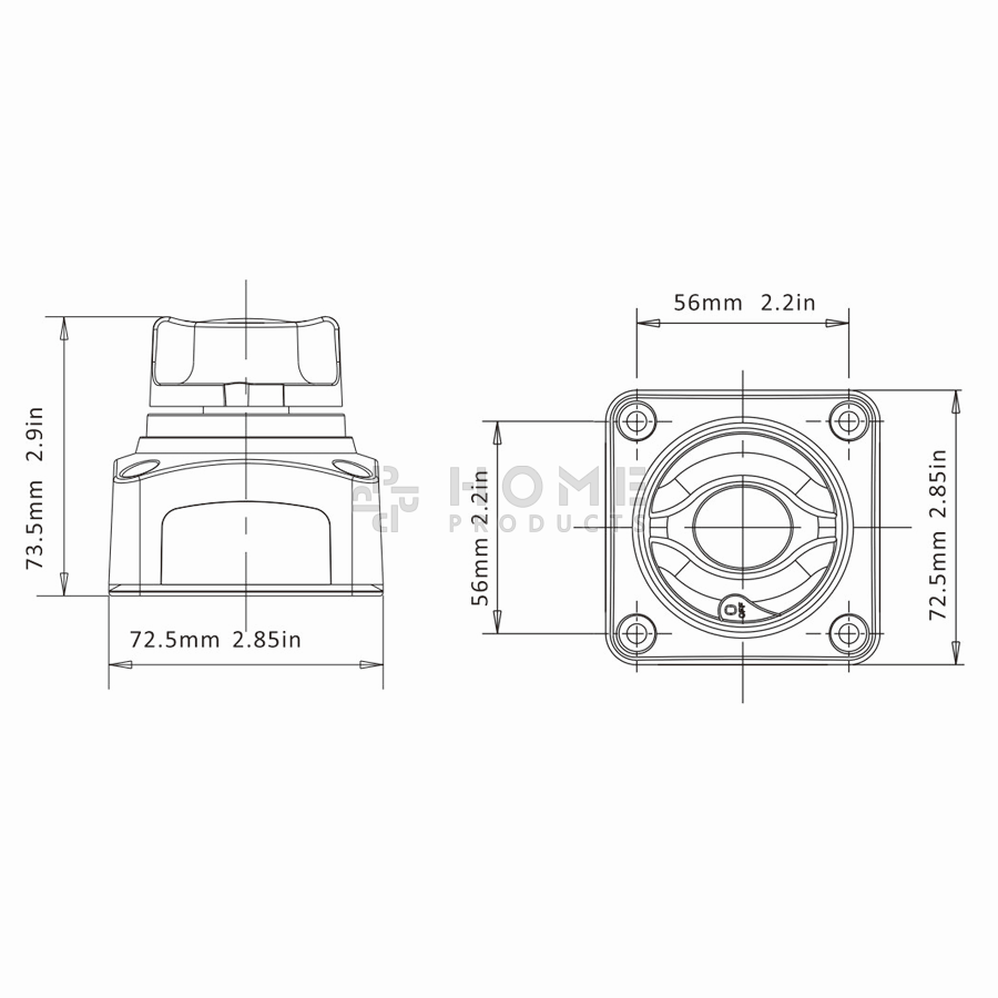 De keuzeschakelaar bevat een uitwisselbaar labelsysteem, waardoor de schakelaar geschikt is voor verschillende toepassingen. Aan alle vier de zijden zitten afneembare panelen, voor toegang tot maximaal 10 kabels. Aan de achterkant bevindt zich een klep die de achterklemmen beschermt tegen kortsluiting.