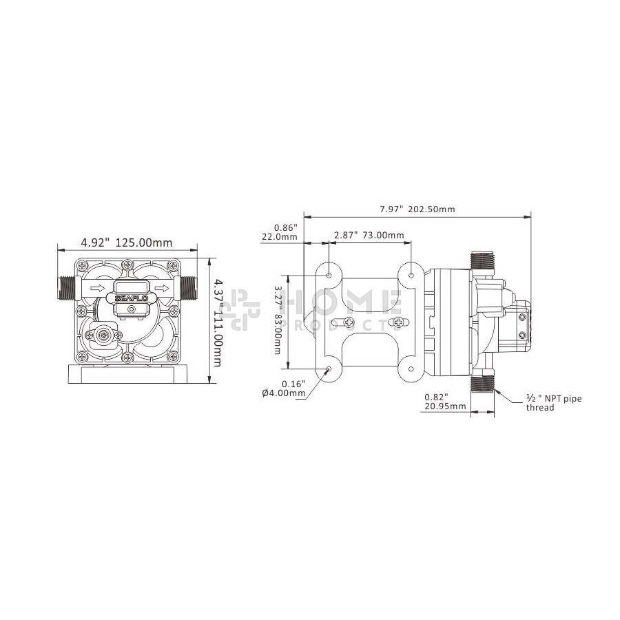 De membraanpomp beschikt over twee slangaansluitingen waaraan slangpilaren kunnen worden bevestigd, en pompt tot 11,3 liter water per minuut. Verder bevat hij een ingebouwde drukschakelaar, deze start en stopt de pomp automatisch wanneer er een kraan wordt geopend of gesloten. Hij is eenvoudig te installeren en onderhouden, en kan aan tot vijf voorzieningen tegelijk aansluiten.