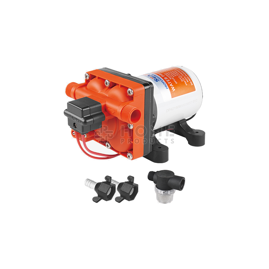 De membraanpomp beschikt over twee slangaansluitingen en pompt tot 11,3 liter water per minuut. Verder bevat hij een ingebouwde drukschakelaar, deze start en stopt de pomp automatisch wanneer er een kraan wordt geopend of gesloten. Daarnaast is de pomp eenvoudig te installeren en onderhouden, en kan u hem aan tot wel vijf voorzieningen tegelijk aansluiten.