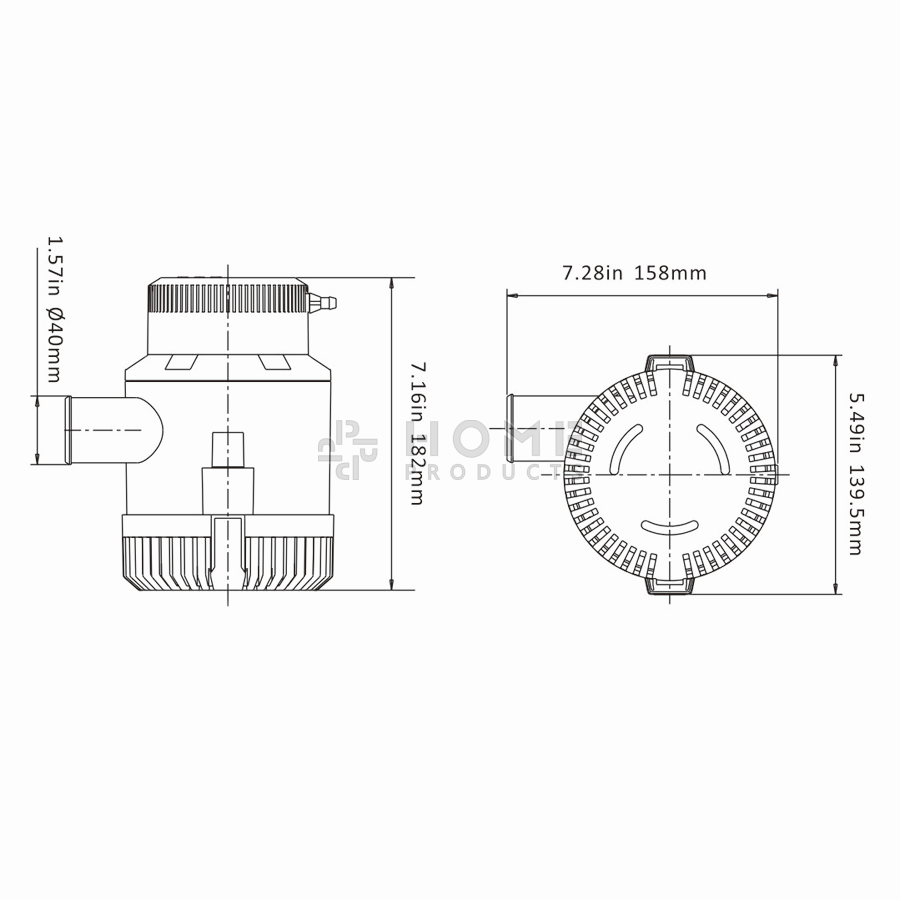 Deze niet-automatische bilgepomp pompt 220,8 liter water per minuut, en 13.248 liter per uur.