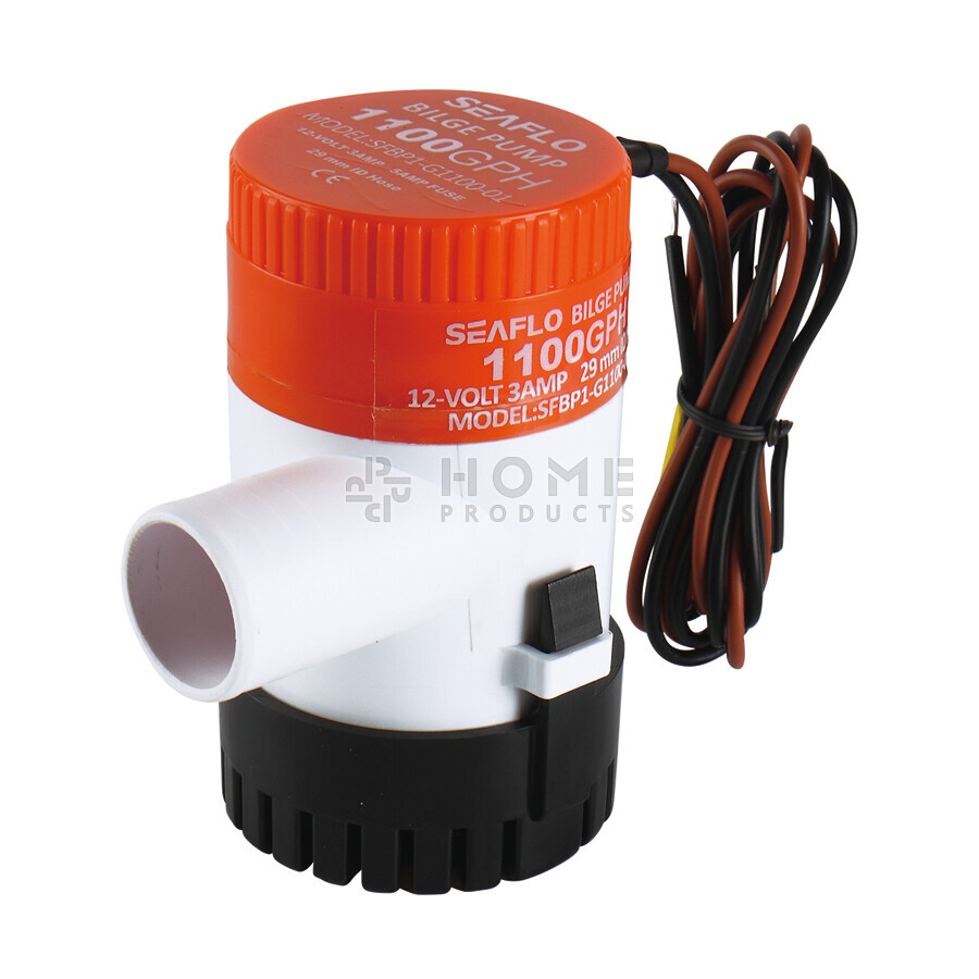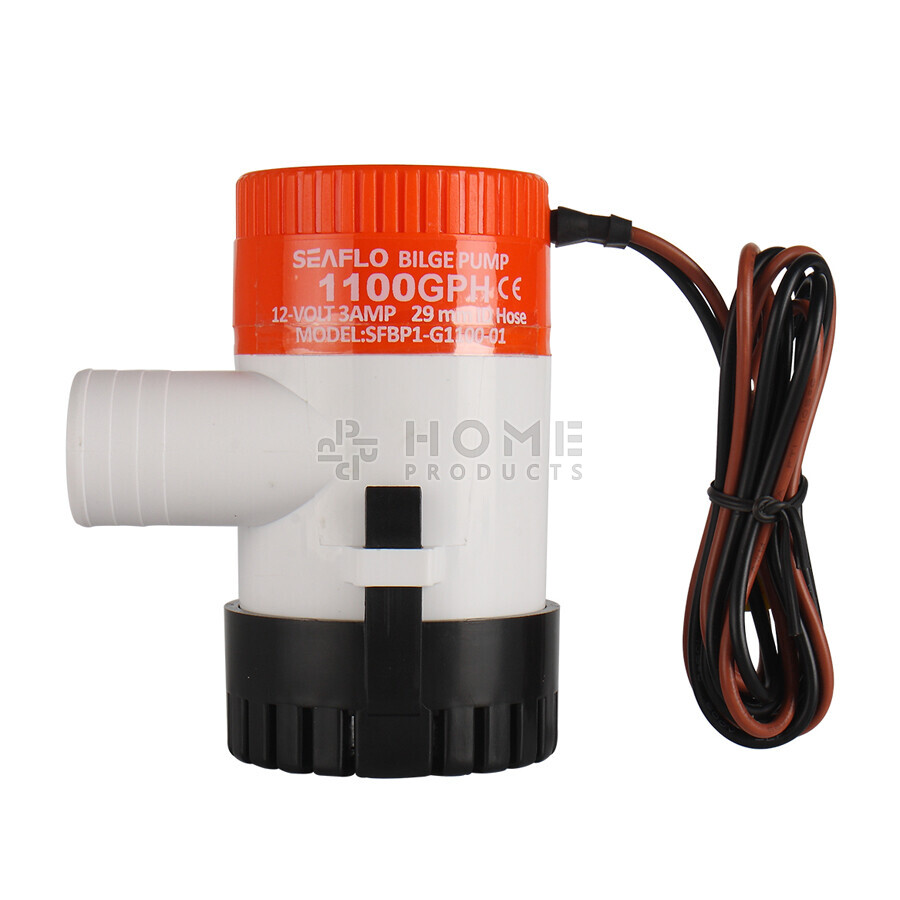 Deze niet-automatische bilgepomp pompt 69,4 liter water per minuut, en 4.164 liter per uur.