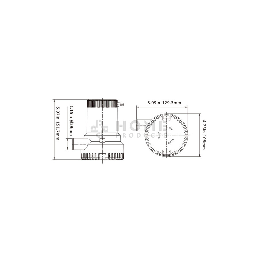 Deze niet-automatische bilgepomp pompt 94,6 liter water per minuut, en 5.676 liter per uur.